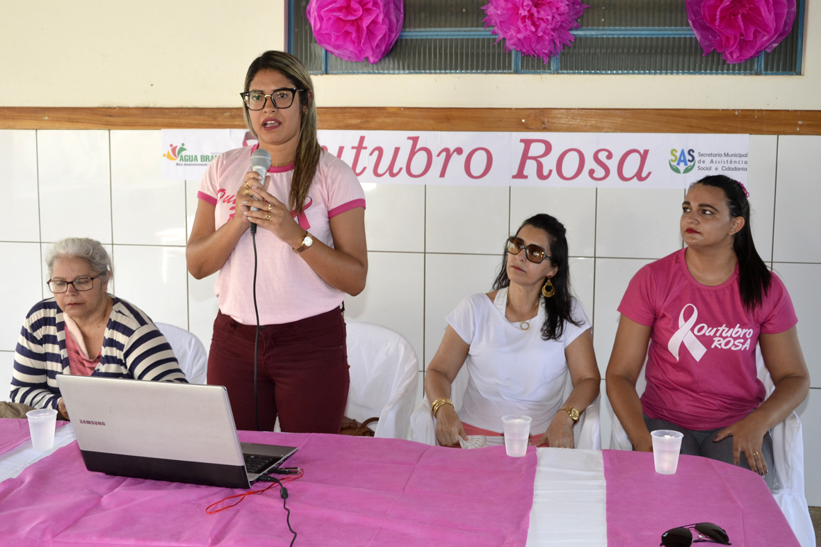 A Prefeitura de Água Branca, por meio da Secretaria Municipal de Assistência Social e Cidadania e Secretaria Municipal de Saúde, realizou, ao longo dessa semana, atividades em prol da campanha Outubro Rosa, que alerta para a prevenção do câncer de mama. As ações aconteceram no Bairro Mutirão e no Povoado Santo Antônio, nesta quarta (25) e sexta-feira (27), respectivamente.